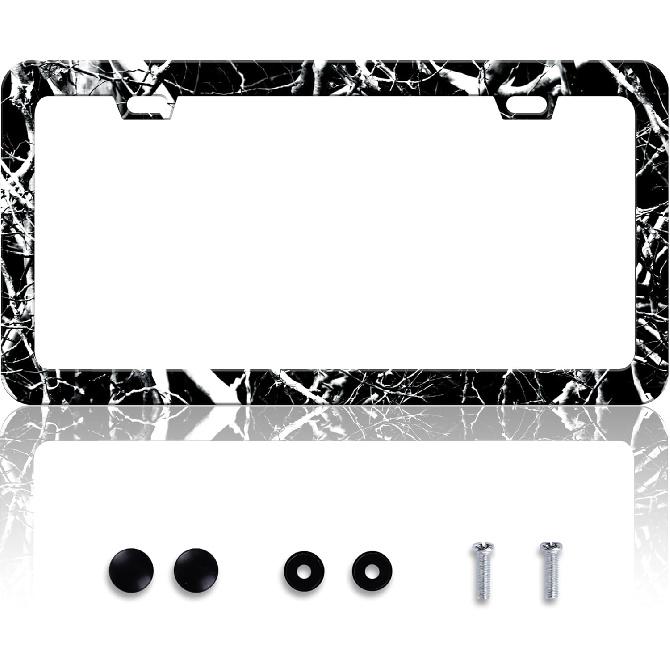 Black White Camouflage License Plate Frame Branches Trunks Camo License Plate Frames Personalise Stainless Steel Funny Design Compatible With