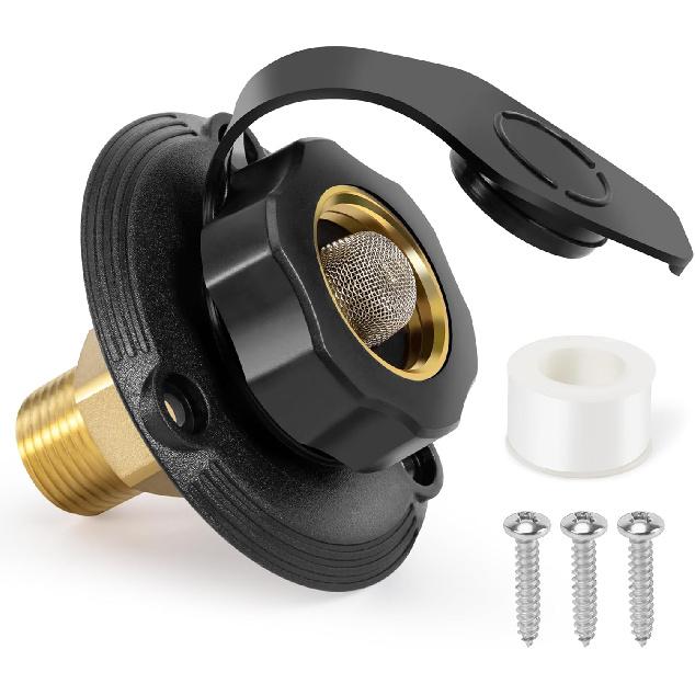 TONDA RV City Water Inlet With Check Valve, Brass Thread RV Water Fill Inlet Replacement, RV Water Hose Connector For Camper, Trailer, Motorhome