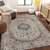 Oriental Medallion Carpets Elaborate Floral Pattern Navy Cream Gold Tones for Luxurious Living Room Decor