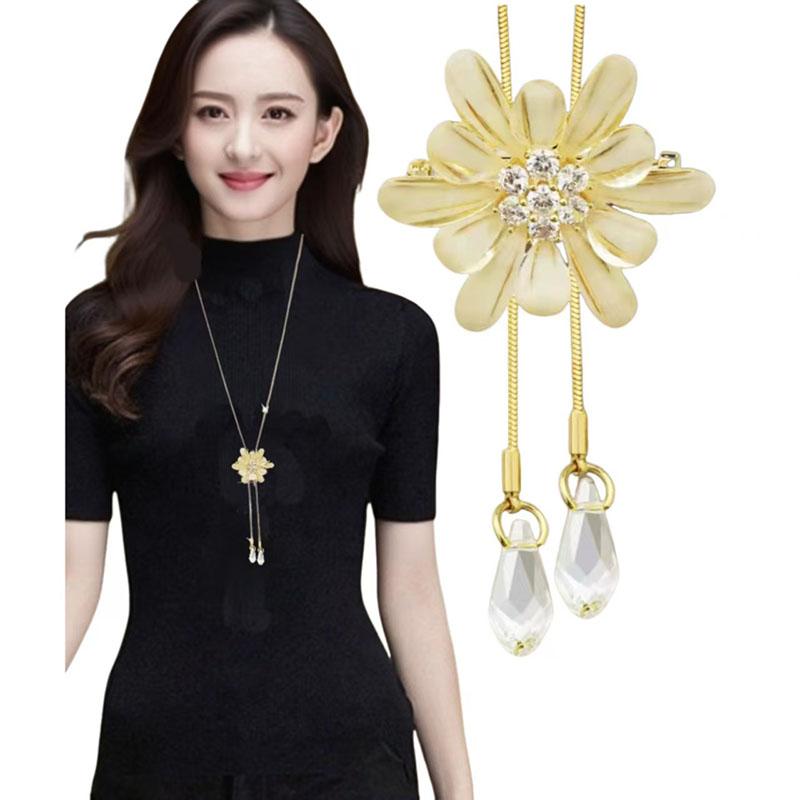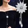 1PC Women's Fashion Metal Rhinestone Flower Rose Long Necklace Sweater Chain Accessories for Women Travel Party Jewelry Festival Gifts