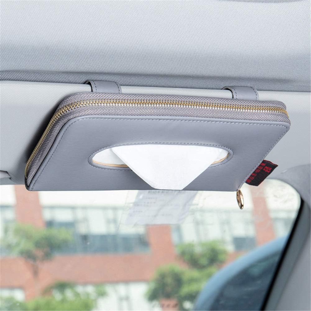 Car Sun Visor Tissue Holder, Napkin Holder, PU Leather Backseat Tissue Case Holder For Car Vehicle With Zipper (Grey)