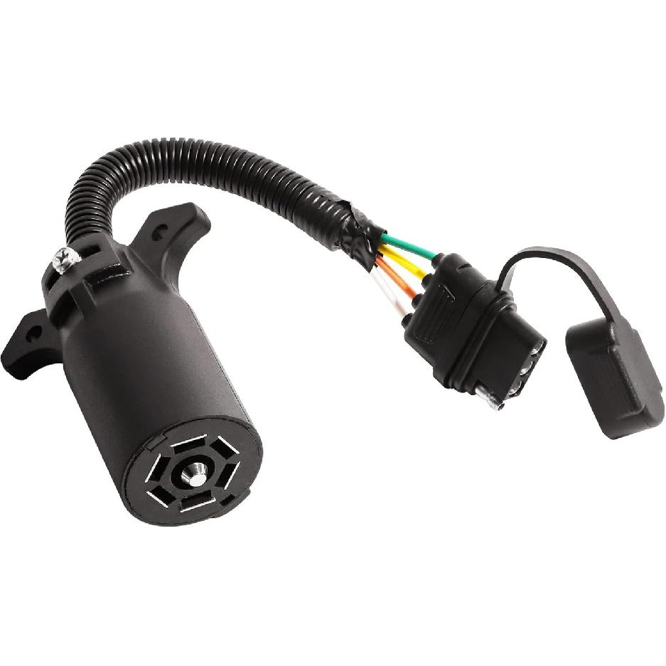 Oyviny 7 Way To 4 Way Trailer Plug Adapter, RV Blade 7 Pin Round To 4 Pin Flat Trailer Light Adapter 11.6 Inches