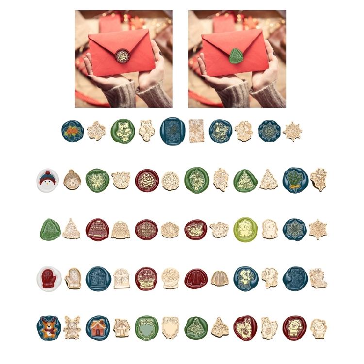 Elevating your sealing experience with our Christmas embossed seal stamp head replacement, used for scrapbooking, envelope decoration, wine bottle, package wrapping, wedding invitation embellishment.