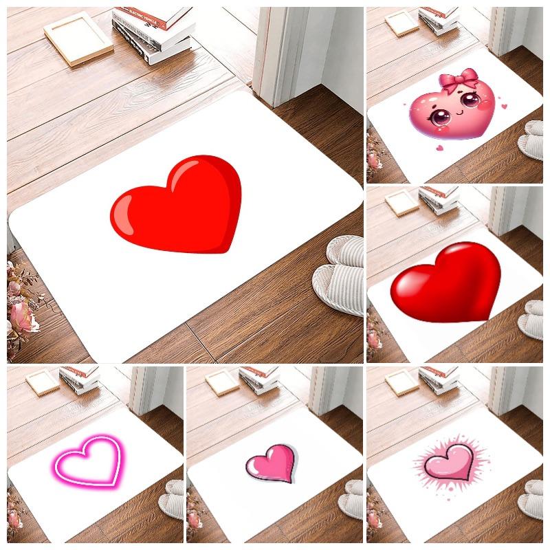 A Heart of Love Printing Non-Slip Small Rug Waterproof Easy To Clean Floor Mat for Indoor Outdoor Use Durable Home Decoration