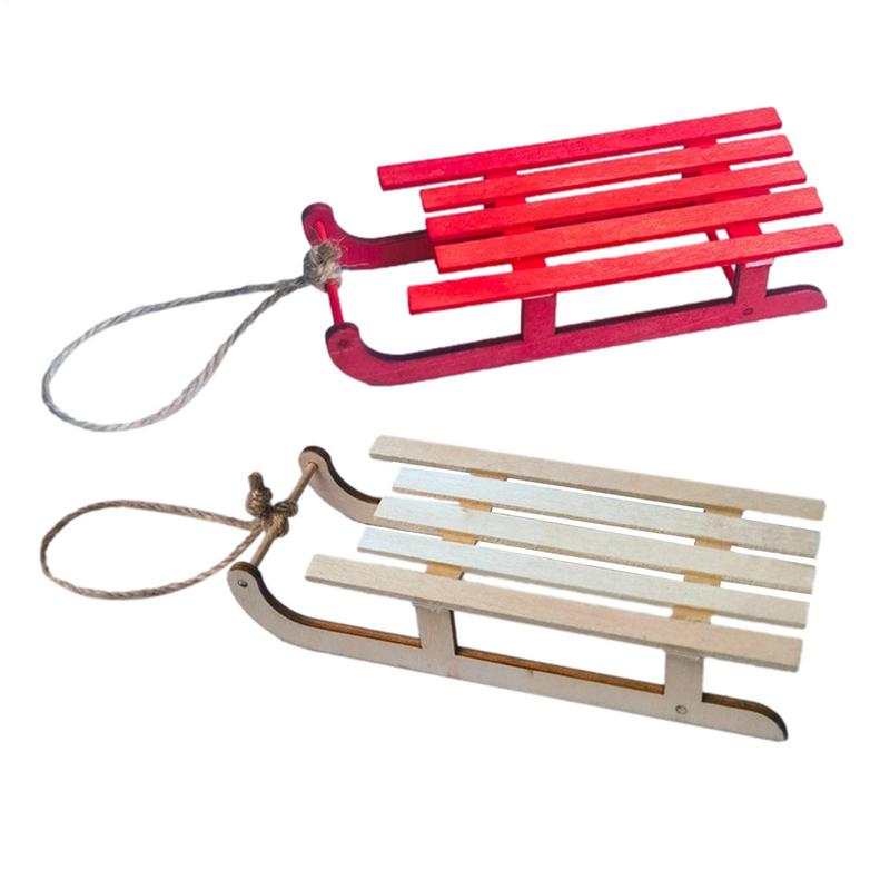 Dollhouse Miniature Wooden Sleigh Model Sled Desk Ornament Christmas Vintage Living Scene Tree Hanging Decor Xmas Gift Pendant