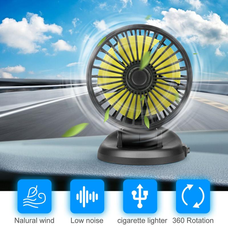 12v/24v Car Cooling Fan Usb Interface Powerful 360 Degrees Rotatable Electric Cooler Universal For