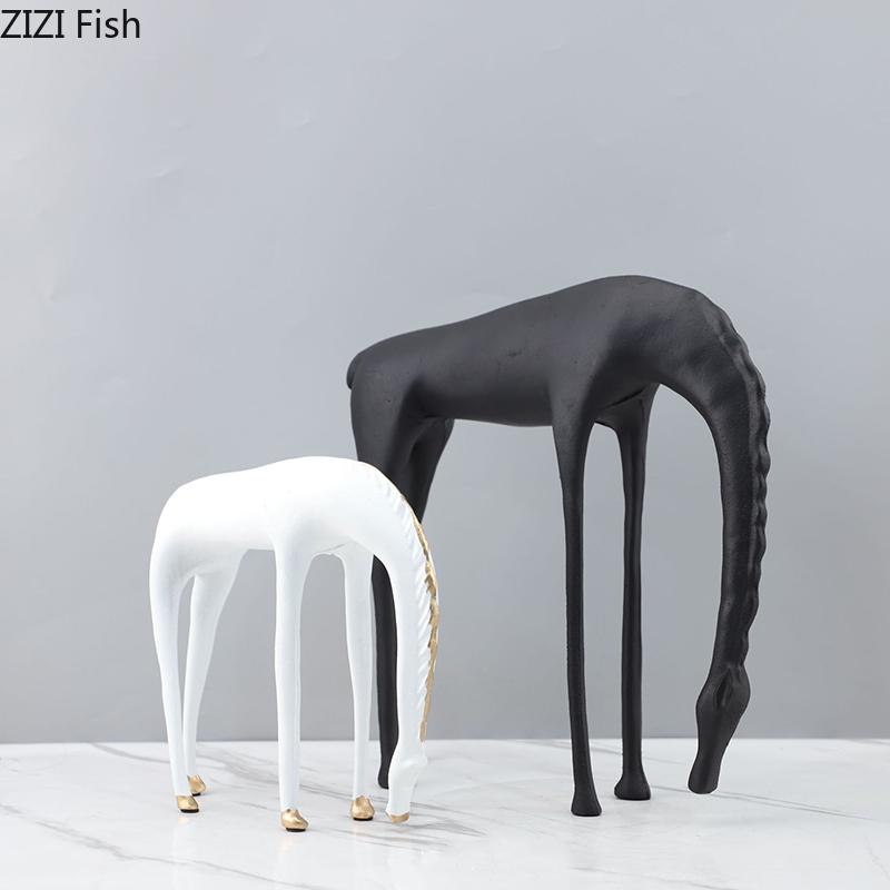 Creative Long Necked Horse Statue Desk Decoration Minimalist Horse Sculpture Metal Crafts Ornaments Room Aesthetic Decor