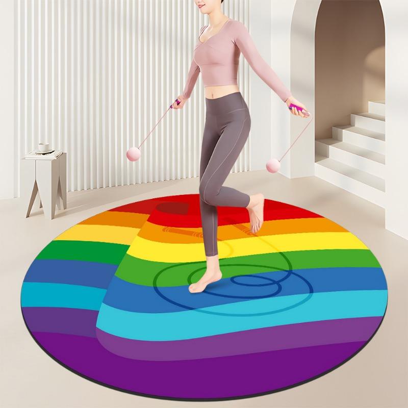 Rainbow Spiral Fitness Mats Colorful Flower Design Movement Healthy Motif Non Slip Exercise Rugs for Home Gym