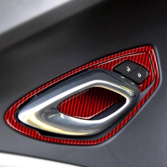 6pcs Red Carbon Fiber Car Inner Door Handle Bowl Decoration For Camaro 2016-
