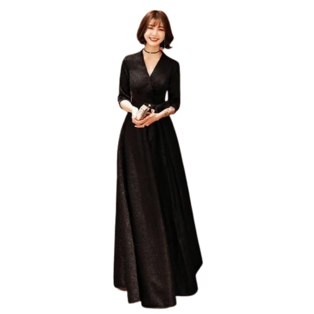 [A simple long black dress for adults] The cache-coeur style design is cool and neat, and the waist ribbon adds a touch of cuteness. The sparkling, shiny fabric makes this a cool adult party dress that is "simple yet eye-catching"! [Specifications] Silhouette: Slim A-line, Fabric Thickness: Regular, Not See-Through, Not Stretch, Lining: Skirt, Opening: Back Zipper, Accessories: Waist Ribbon (Non-Removable), Material: Polyester, Other [Color] Black, [Sizes] <XS> Length 137cm, Shoulder Width 30cm, Sleeve Length 37cm, Bust 70cm, Waist 60cm <S> Length 138cm, Shoulder Width 32cm, Sleeve Length 37cm, Bust 74cm, Waist 64cm <M> Length 139cm, Shoulder Width 34cm, Sleeve Length 38cm, Bust 78cm, Waist 68cm <L> Length 140cm, Shoulder Width 36cm, Sleeve Length 38cm, Bust 82cm, Waist 72cm <XL> Length 141cm, Shoulder Width 38cm, Sleeve Length 39cm, Bust 86cm, Waist 76cm <2XL> Length 142cm, shoulder width 40cm, sleeve length 39cm, bust 90cm, waist 80cm *Measured flat by staff