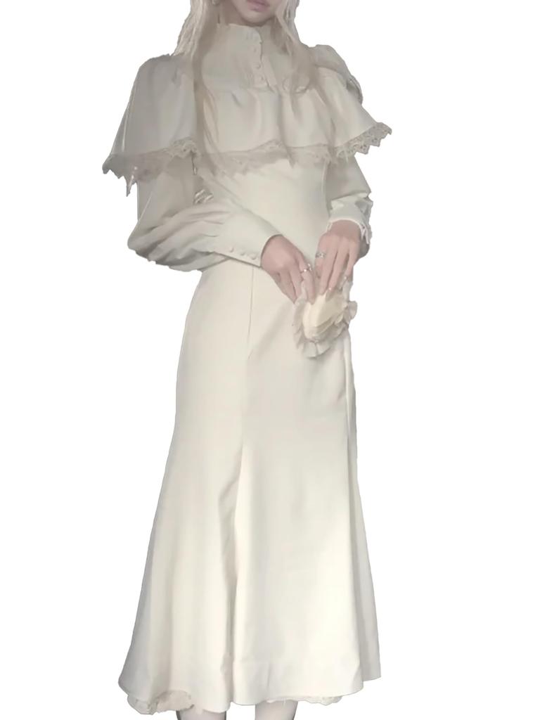 Gothic Lolita Dress with Neat and Clean Flared Lace and Feminine Solid Long Size S [XHSUKADO] Women's Cape, Long, Mass-Produced Style, Skirt, Ruffles,