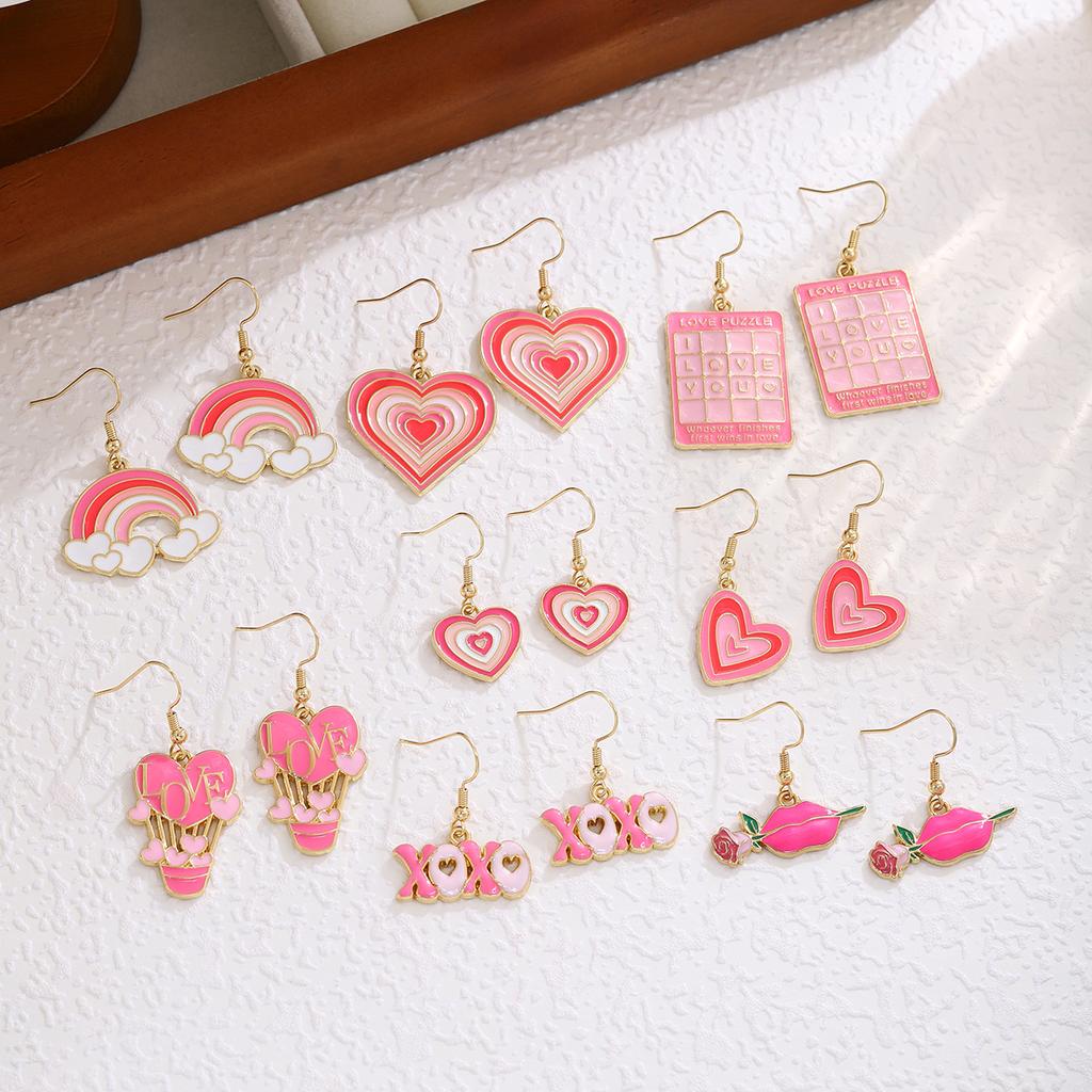 Japanese Pink Peach Heart Checkered Hot Air Balloon Rainbow Ear Hook, Light Luxury High-End Sweet Girl Earrings