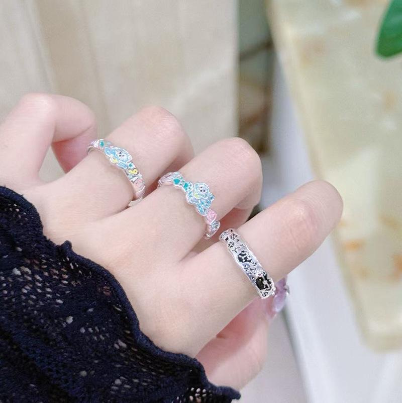 Small Fresh Dopamine Enamel Cute Angel Puppy Open Ring Simple Plain Circle Girlfriend Niche Fashion Ring