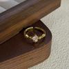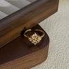 Light Luxury Medieval Vintage Square Diamond-Encrusted Zircon Rhombus Open Ring Niche Stacked Crown Exquisite Ring