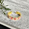 New Medieval French Retro Enamel Drip Open Ring Pattern Court Style Niche Design Personalized Ring Woman
