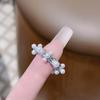 Pink Zircon Niche Design Sweet Pearl Bow Open Ring Women'S High-End Fashion Jewelry