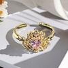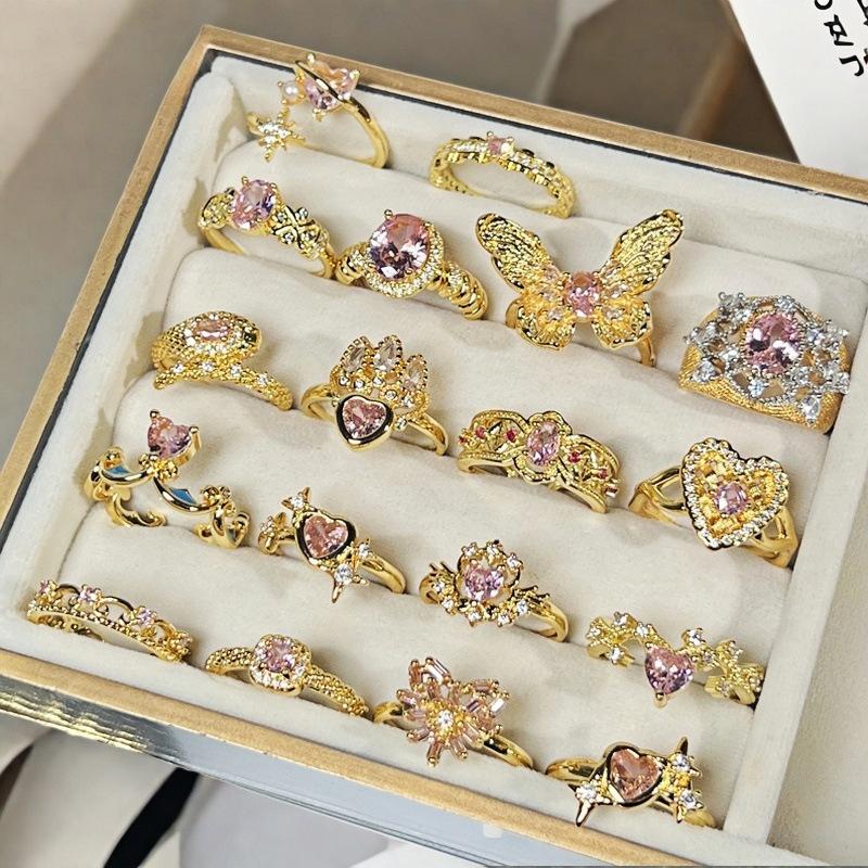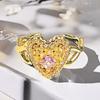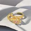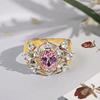 Sweet Girl Heart Pink Love Zircon Crown Open Ring Niche Design Light Luxury High Sense Fashion Ring