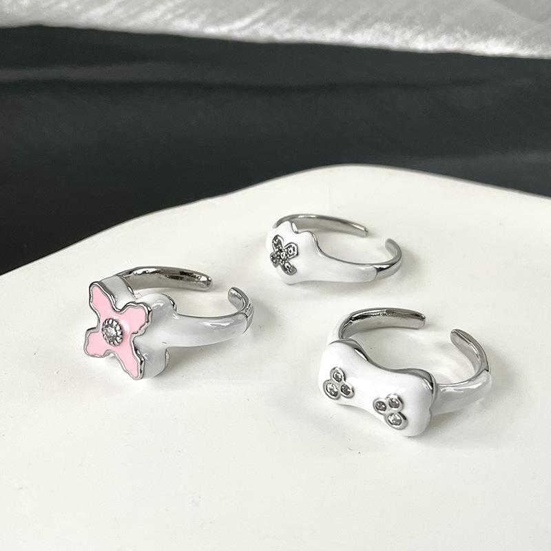 Original Design Niche Cartoon White Enamel Dripping Oil Personality Retro High Sense Cold Wind Opening Ring
