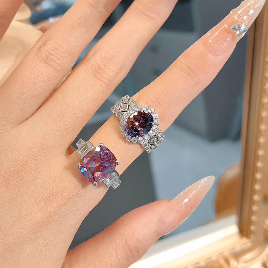 Square Dry Rose Necklace Pendant Imitation Alexander Stone Pigeon Egg Ring High Carbon Purple Diamond Color Treasure Set Female