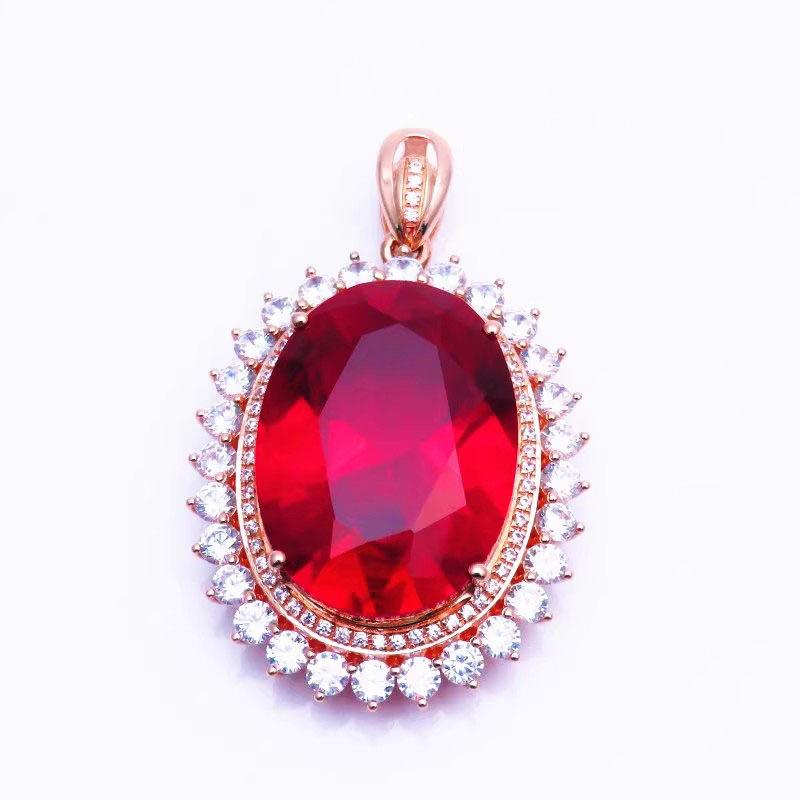 Purple Gold Plated Rose Gold Colored Gold Egg Surface Round Pendant Fashionable Princess Diana Red Stone Pendant
