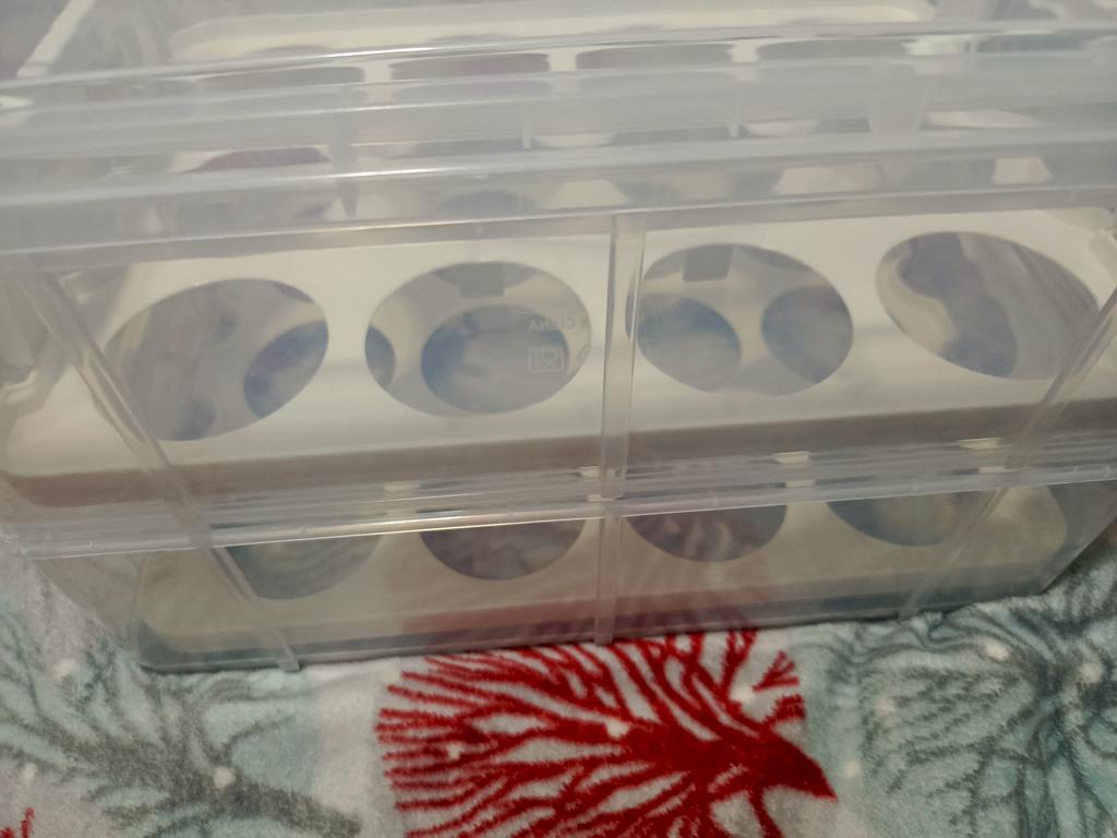 Good two-tier container, just like I wanted for 24 cupcakes! Arrived intact, in just under a month. The cupcake cells are removable, and the container can be used for something else.