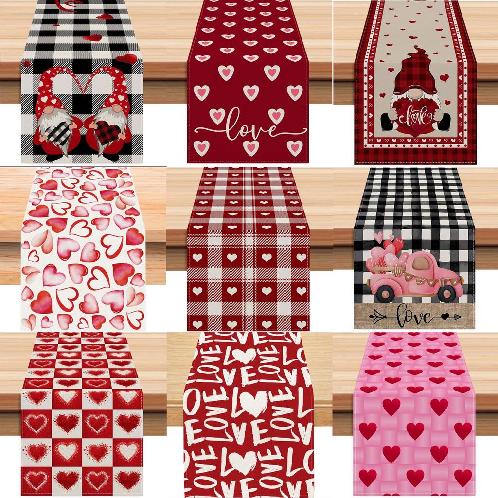 Valentine'S Day Table Flag Red Love Plaid Home Holiday Decoration Table Flag Tablecloth