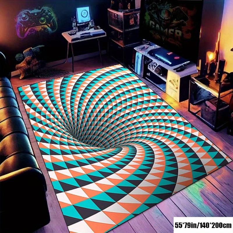 Optical Illusion Vortex Rug - Mind-Bending Geometric Art for Game Rooms Trippy Floor Mat Anti Slip Carpet Can Be Machine Washed