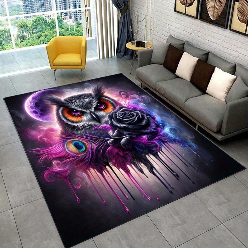 Psychedelic Owl Rug: Vibrant Colors and Cosmic Patterns for Modern Living Spaces - Artistic Home Decor Skid Resistant Carpet