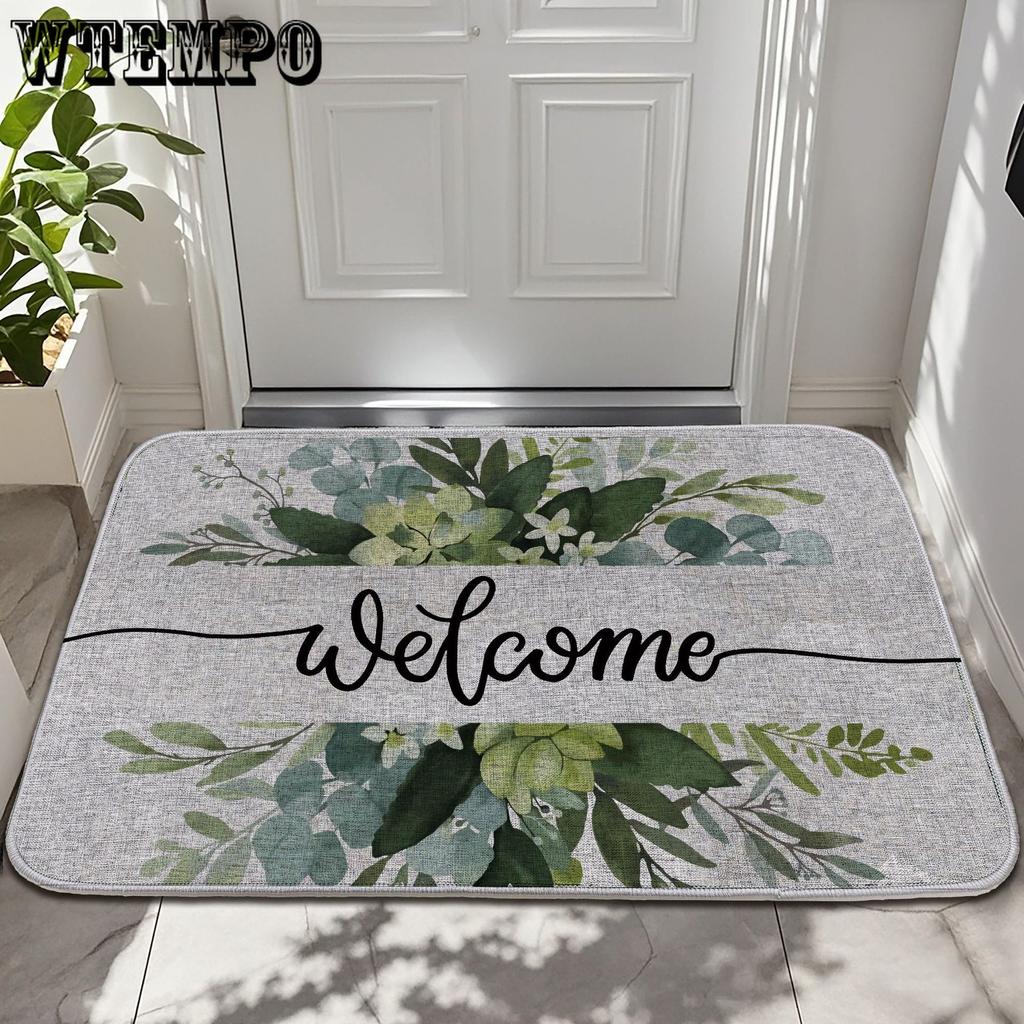 Floral Linen Floor Mat Printed Courtyard Entrance Door Mat Anti Slip Bathroom Floor Mat Carpet