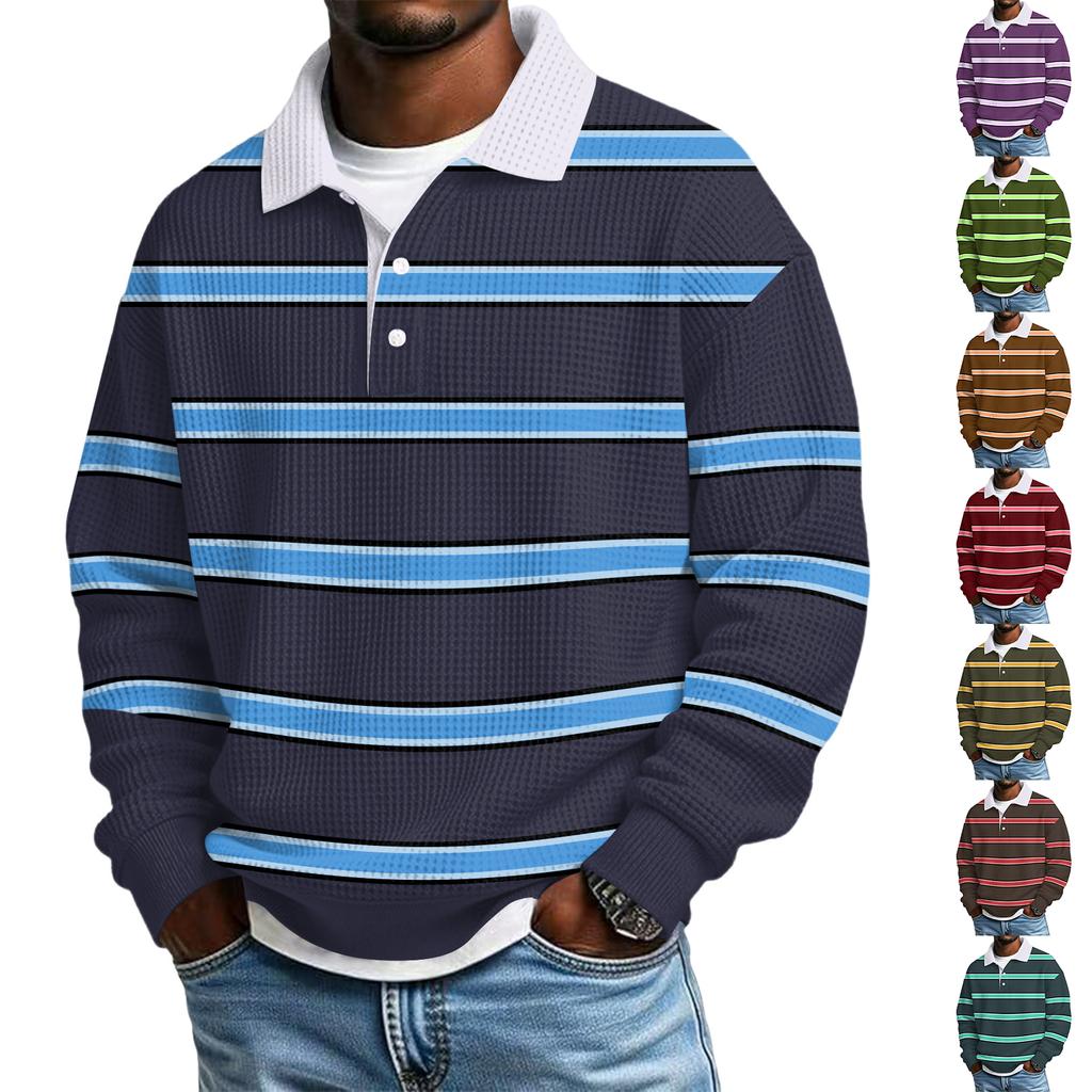 Men's Color-Block Collar Long-Sleeve Casual Top