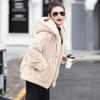 Plush Faux Hooded Pocket Jacket For Women's Loose Plush Long Sleeved Women's Top