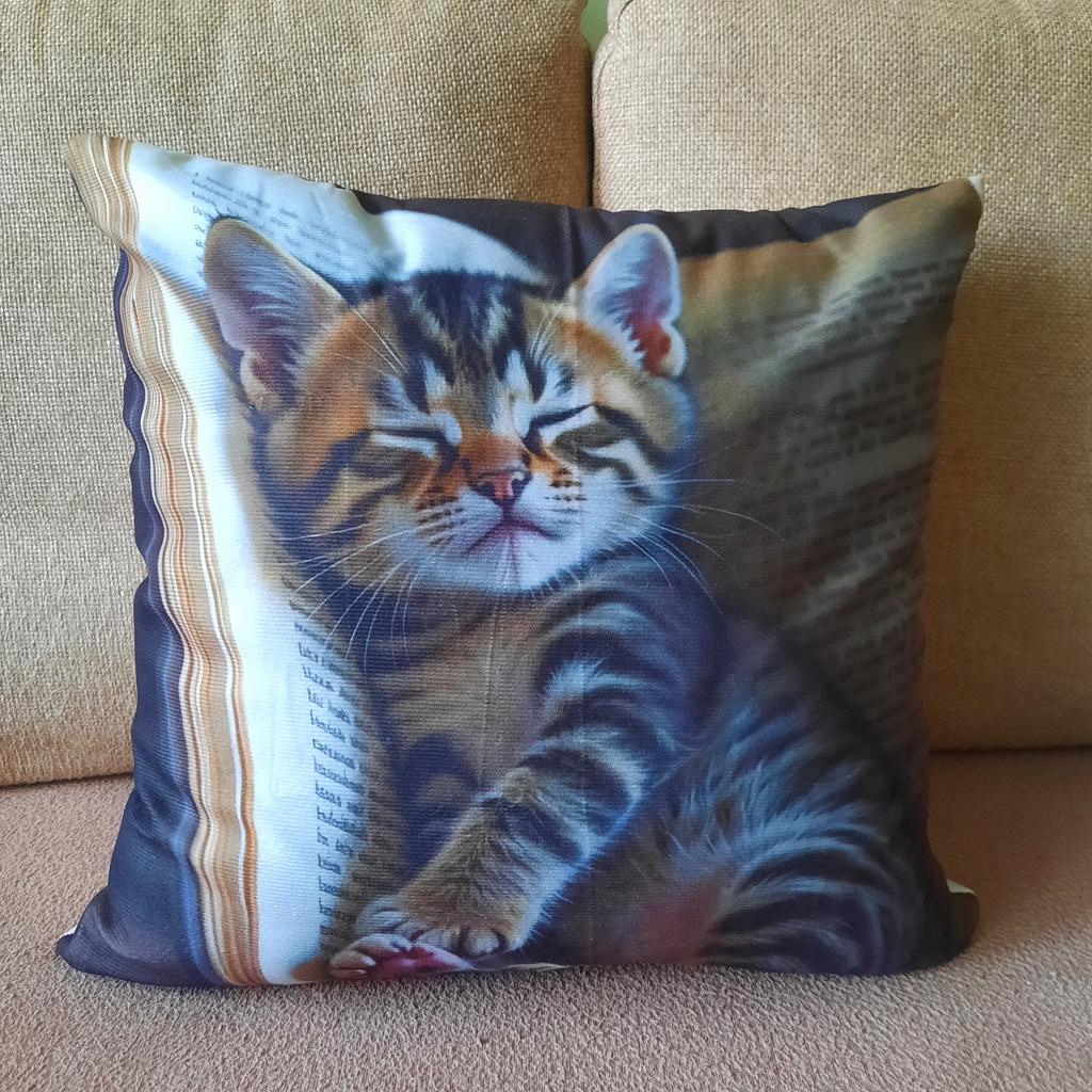 Modern 18x18 Inch One-Sided Print Pillow Cover with Kitten Design for Living Room Accent