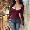 Women's Casual Sexy Solid Color Lace Neck Long Sleeve Top/Undershirt/T-shirt