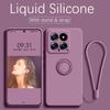 Liquid Silicone Case For Xiaomi 14T Pro 360 ° Rotating Ring Holder Cover For Xiaomi 15 14 13 12 13T 12T Pro Fundas With Strap