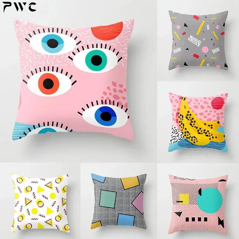 40/45/50 Mint Pink Throw Pillow Case Memphis Inspired Pattern Check Cushion Covers Home Sofa Chair Decorative Pillowcases