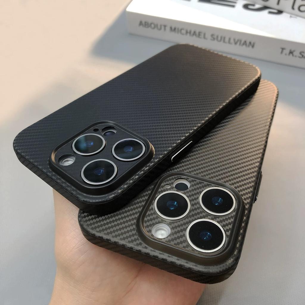 Transparent Carbon Fiber Pattern Case For iPhone 16 15 14 13 12 Pro Max Plus 16E Ultra Thin Cooling Matte Slim Shockproof Cover