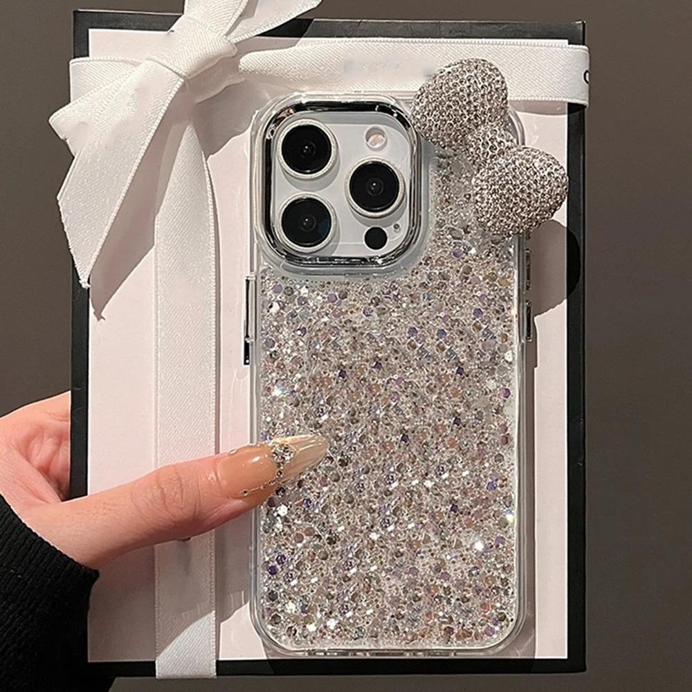 Luxury Rhinestone Bow Epoxy Sequins Phone Case For iPhone 17 16 15 14 13 12 11 Pro Max Plus Cute Bling Shockproof Bumper Cover