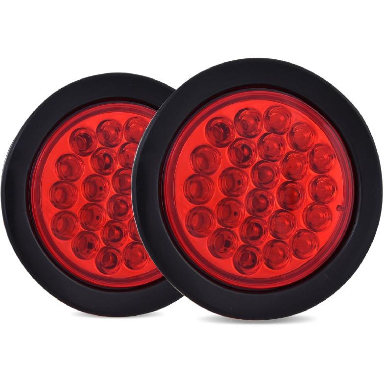 4 Inch Round Trailer Tail Light For 12V Truck Trailer Bus RV Camper ATV UTV 24LED Back Up Reverse Light Waterproof W/Flush Mount Grommets Plugs