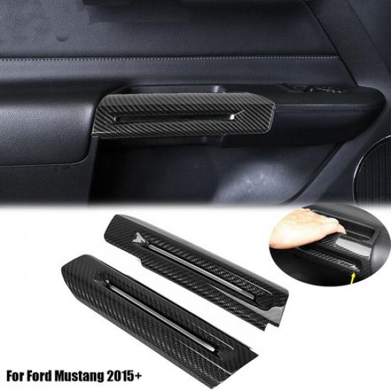 2pcs Interior Door Handle Trim Cover Frame for Ford Mustang 2015+ Carbon Fiber