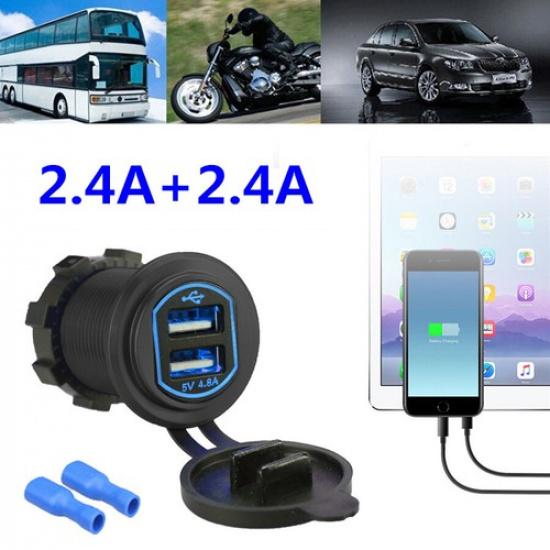 Dual Car USB Quick Charger LED 2.4A*2 Boat Truck Interior Charging Accessories