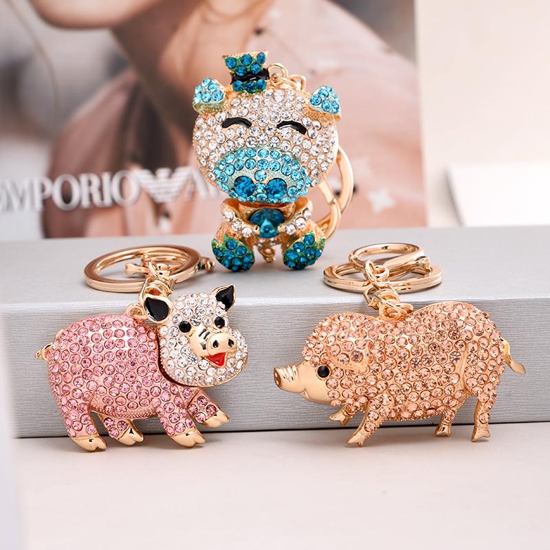 EASYA Cute Pig Shape Keychain Bag Key Ring Kawaii Anime Vintage Metal Crystal High-end Luxury Ladies Charm Jewelry Gifts Friends