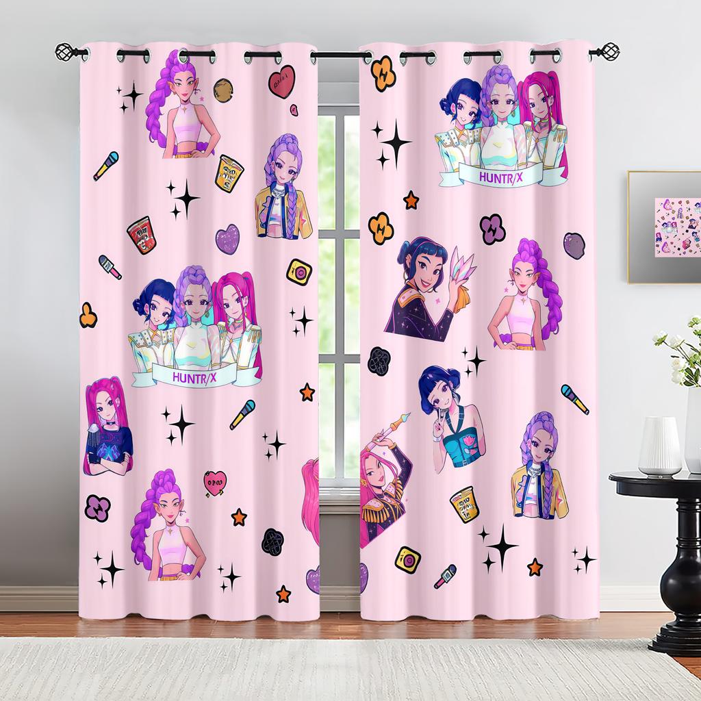 2Pcs K-Pop Demon Hunters Hot Anime Cartoon Printed Blackout Curtains Perfect For Bedroom Living Room Fashion Decorative Curtain