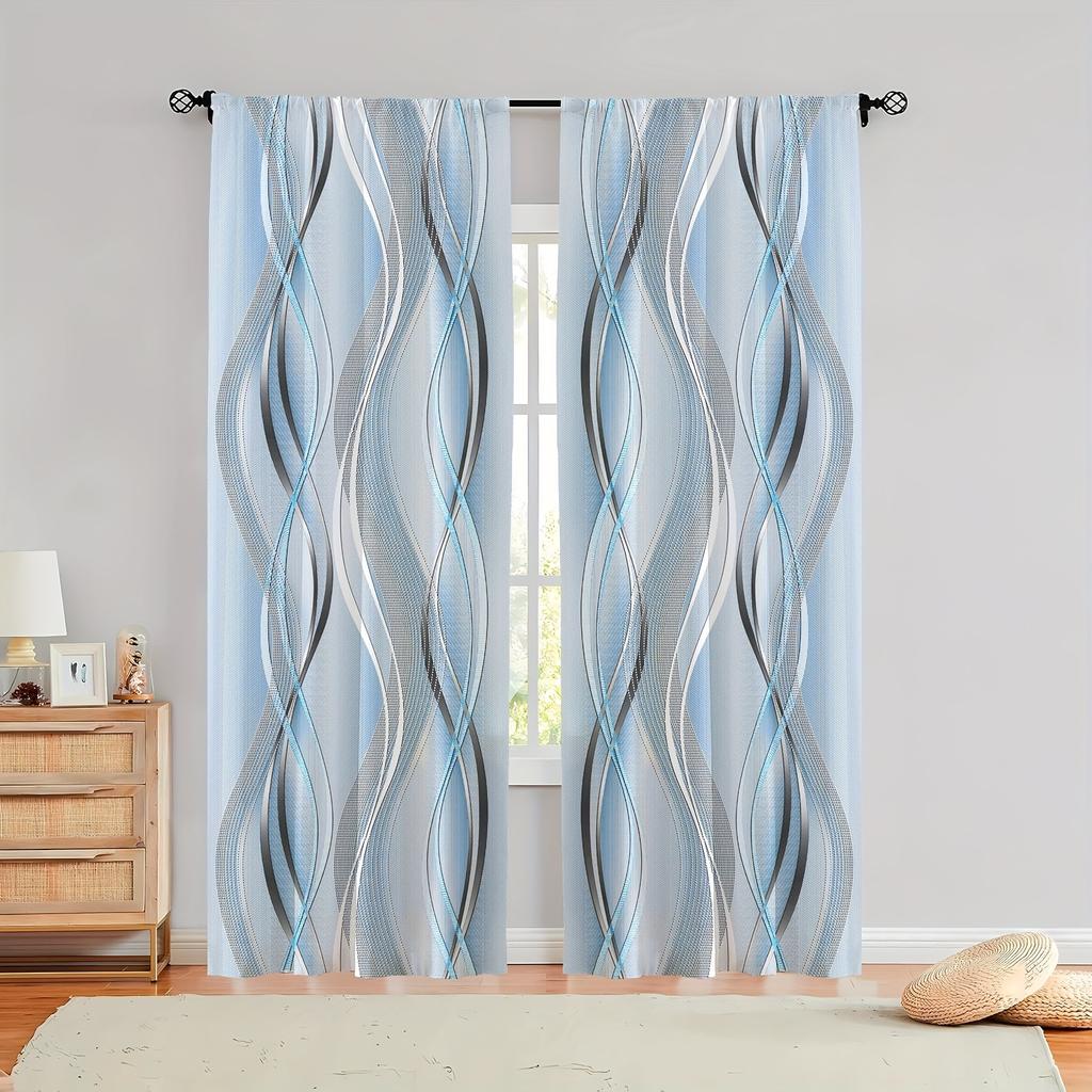 2 Pieces of Light Blue Lines Printed Curtains, Pole Bag Curtains 42*84, Home Decoration, Room Decoration