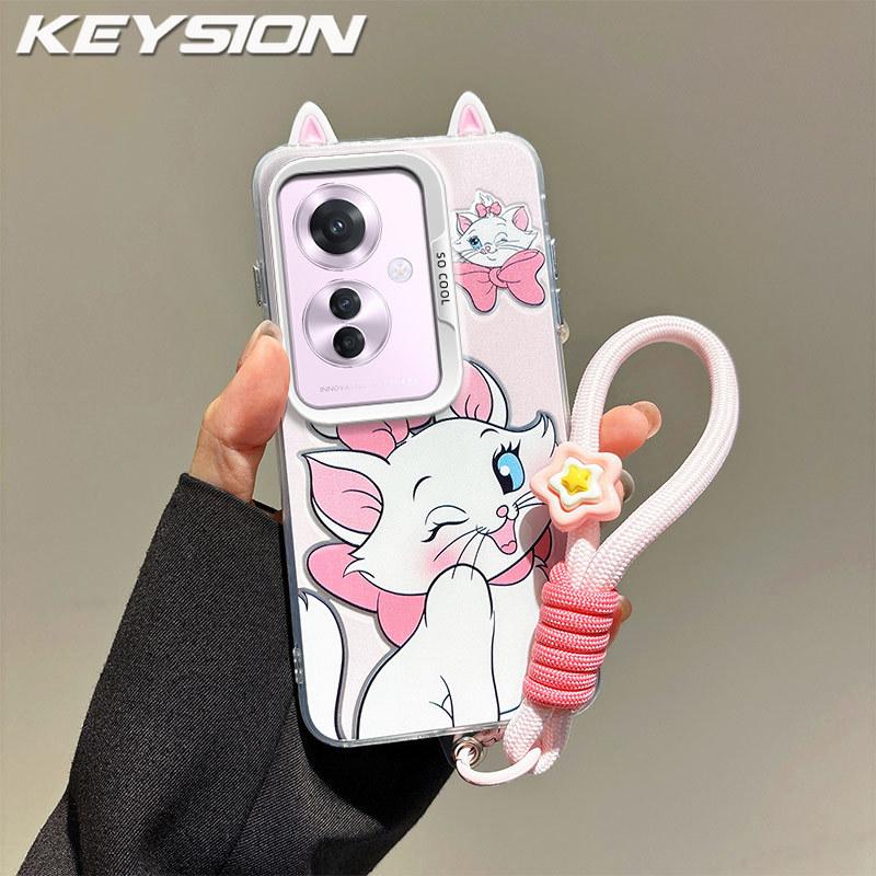 KEYSION Cute Ear Cartoon Case for OPPO Reno11 F 5G with Lanyard Soft Silicone+PC Shockproof Phone Back Cover for OPPO Reno 11F 5G