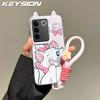 KEYSION Cute Ear Cartoon Case for VIVO V27 5G with Lanyard Soft Silicone+PC Shockproof Phone Back Cover for VIVO V27 5G