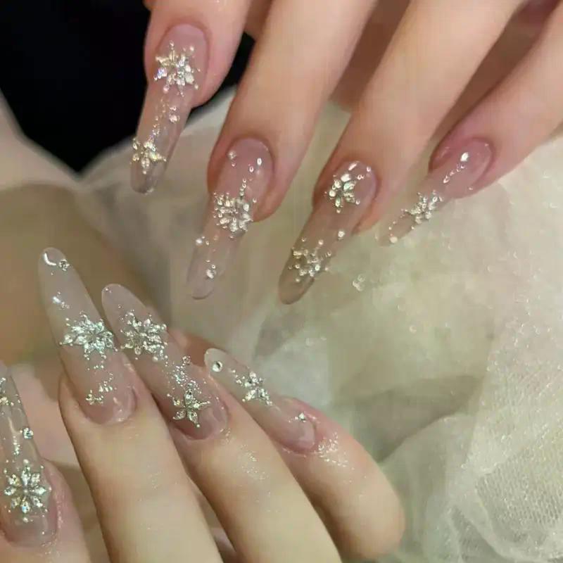50Pcs Colorful Rhombus Nail Charms Snowflake Nail Rhinestone Flat Bottom Stereoscopic Nail Decoration DIY Accessories