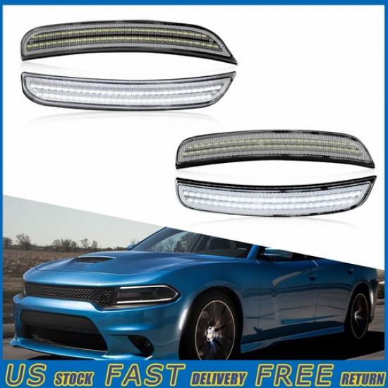 LED SIDE MARKER LIGHTS CLEAR LENS For 2015- DODGE CHARGER FRONT & REAR SET V