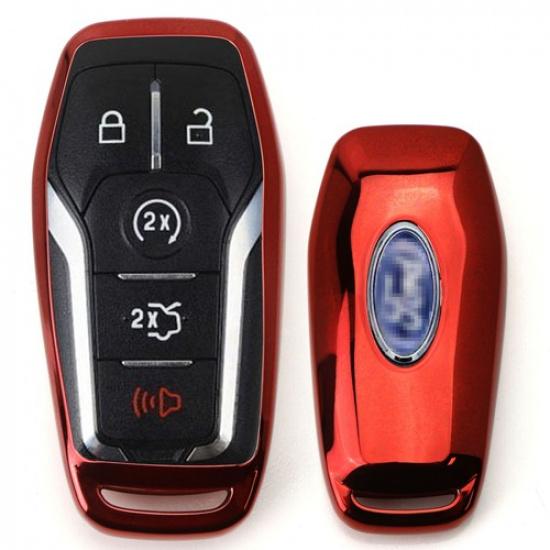 Chrome Red TPU Key Fob Case For Ford or Lincoln 4/5-Button Intelligent Keyless
