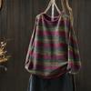 Johnature Women Vintage Winter Purple Sweaters O-Neck Long Sleeve Striped Knitted Female Casual Soft Sweaters