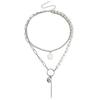 European and American Fashion, Simple Pearl Splicing Chain Necklace, Double-layer Women's Necklace Stacked with Wind Alloy Necklace